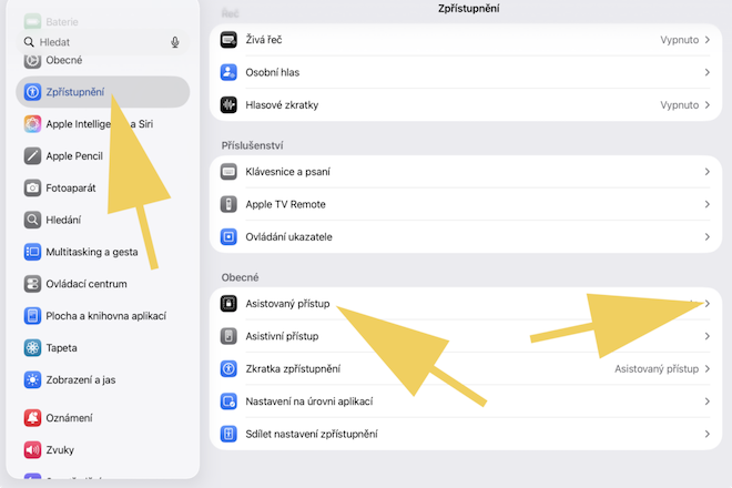 Nesplést si Asistovaný přístup a Asistivní přístupu (Assistive Access), což je upravené rozhraní pro uživatele, kteří potřebují specifický vzhled a ovládání iPadu.